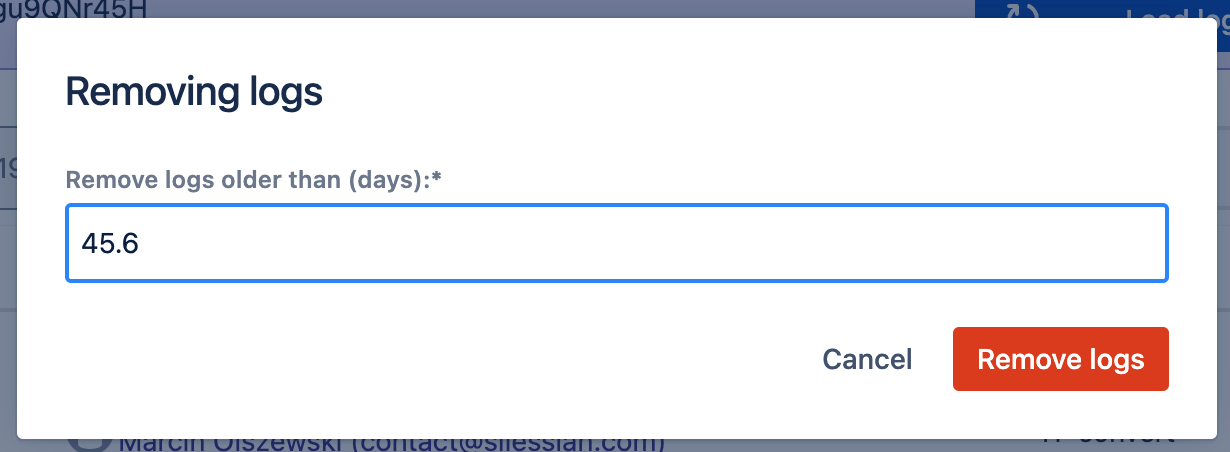 3. Remove logs - You can remove logs that are older than provided number. Number is displayed in days. Float numbers are allowed to handle hours if neede.