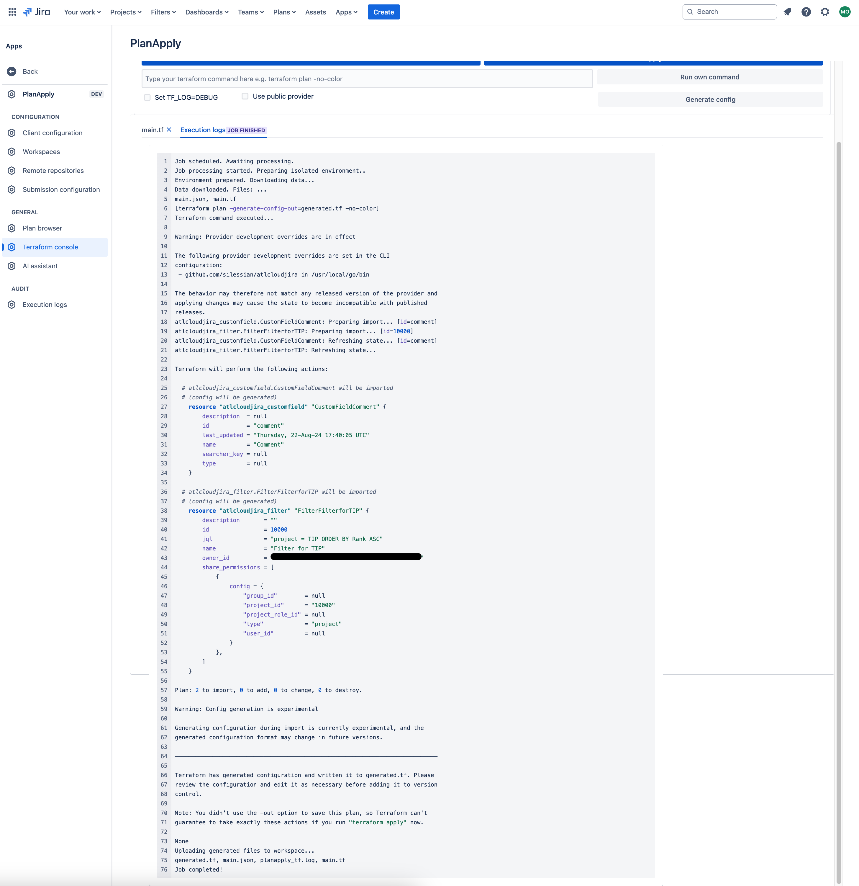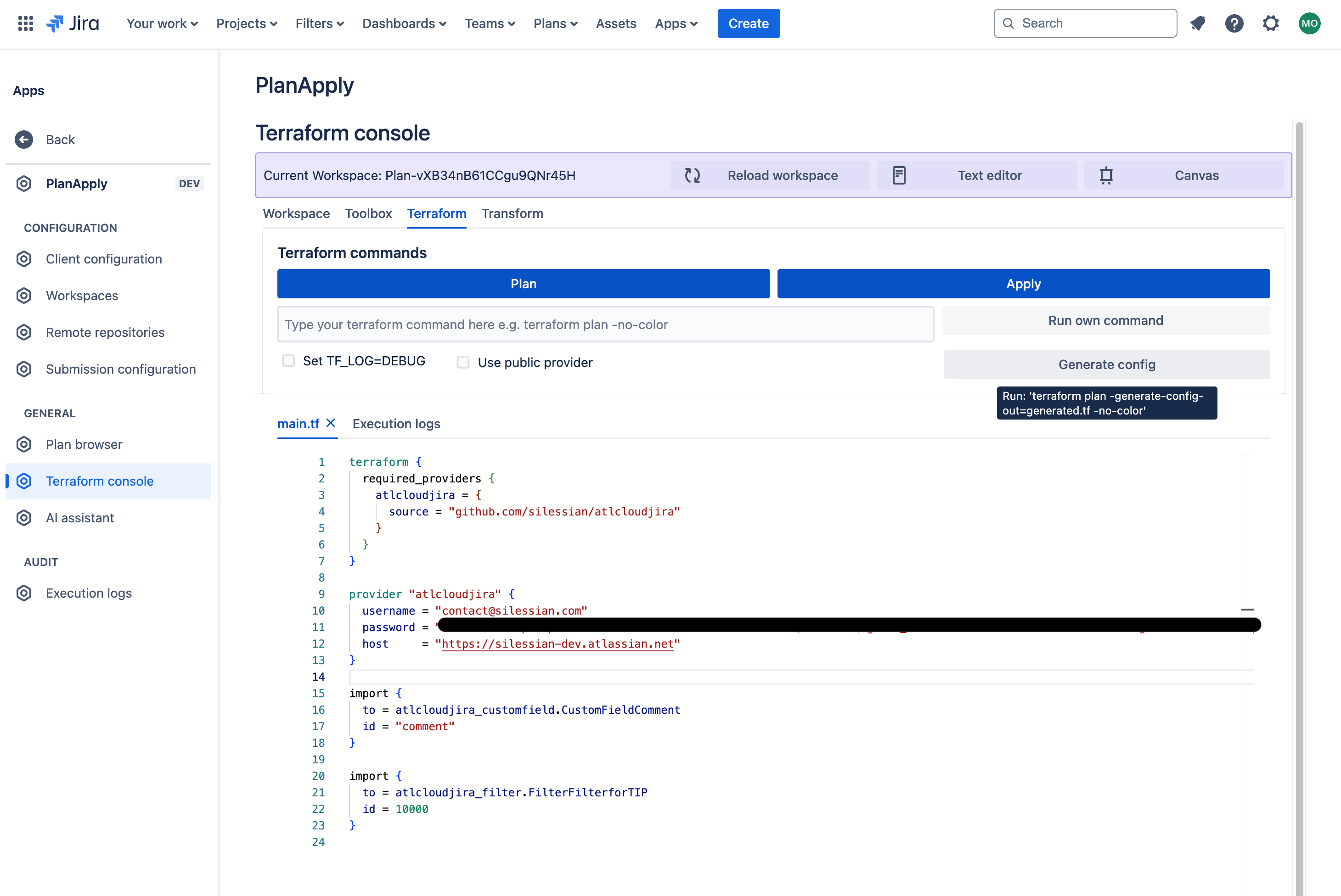 App will append volatile file with provider block and public provider credentials. This file will not be stored or returned as the result of any operation.