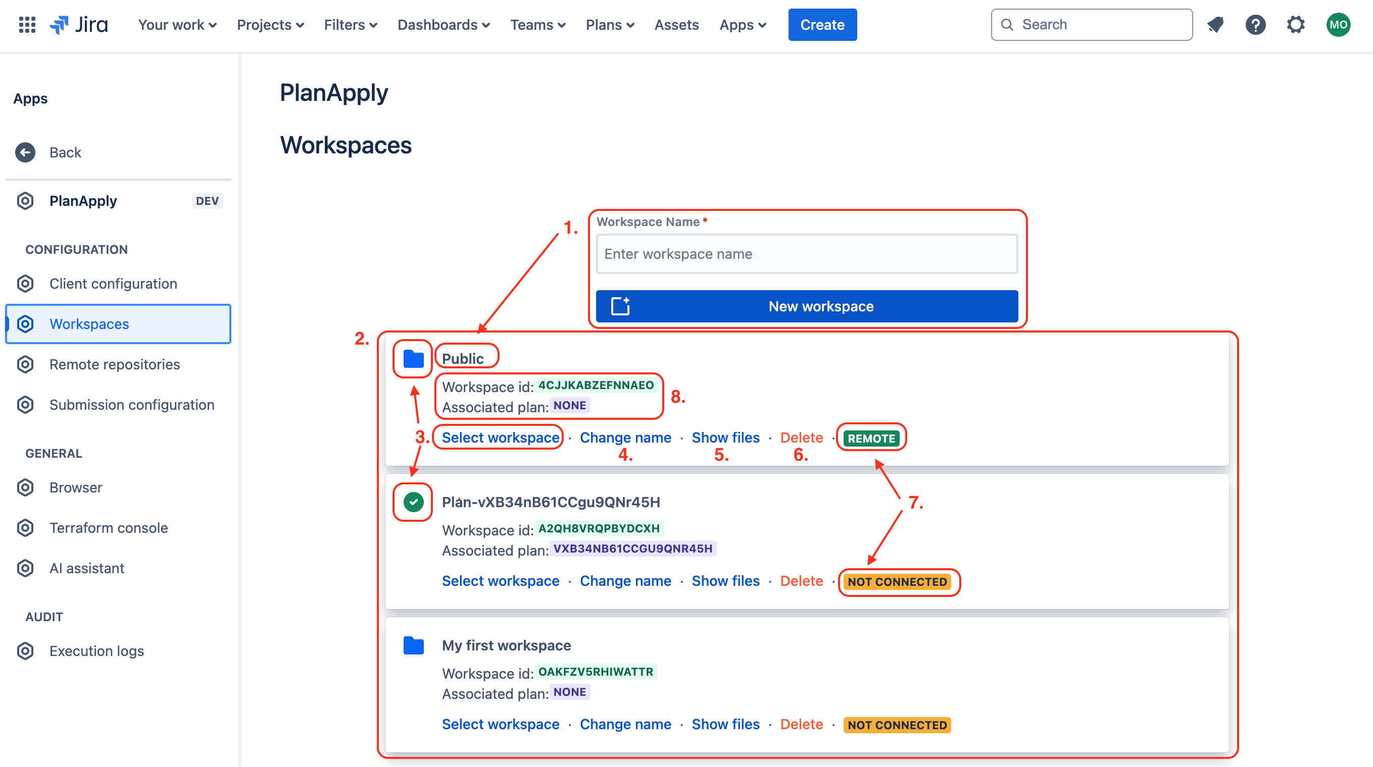 1. Generic workspace ID that helps to debug and identify given workspace. Workspace ID can be present on plan browser if it's associated with plan