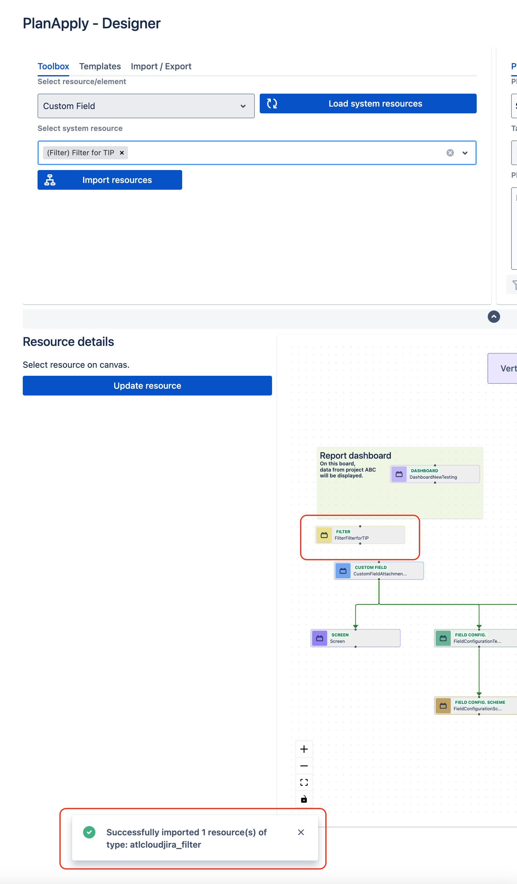 <figure><img src="https://2582686426-files.gitbook.io/~/files/v0/b/gitbook-x-prod.appspot.com/o/spaces%2Fn7nTpq2xv8EGbzULdTCb%2Fuploads%2FN6rzrEGh297WSmxWpXZq%2FToolbox4.png?alt=media&#x26;token=fd33be5c-e801-4c24-91ff-866b0e2723dd" alt="" width="375"><figcaption><p>Result of resource import</p></figcaption></figure>